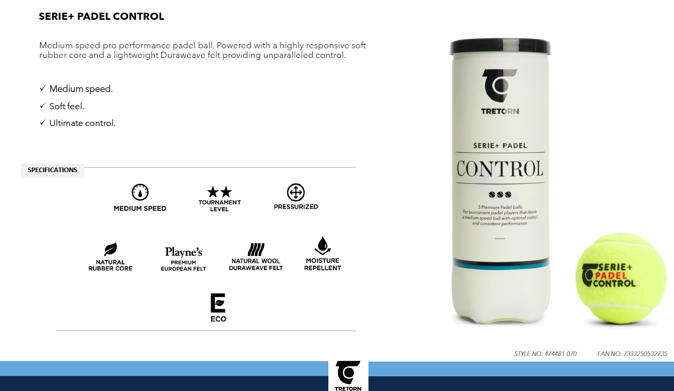 De Tretorn Serie+ Padel Control bal is een professionele bal voor alle type spelers.